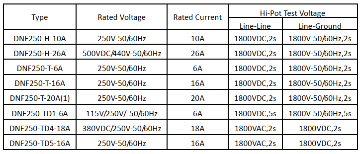 DNF250-H-10A , DNF250-H-26A, DNF250-T-6A, DNF250-T-16A, DNF250-T-20A(1), DNF250-TD1-6A, DNF250-TD4-18A, DNF250-TD5-16A