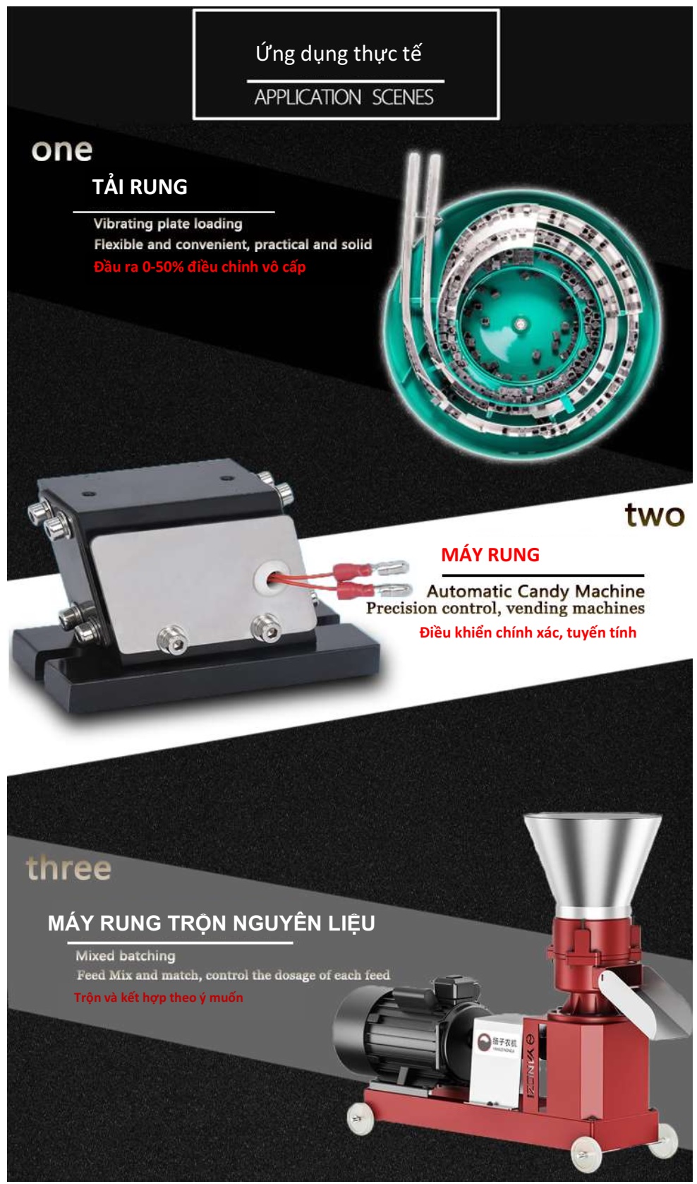 Chức năng : kiểm soát độ rung của máy rung chủ yếu được sử dụng trong máy làm bánh kẹo, xi măng, bột ngọt, thức ăn chăn nuôi, máy bán hàng tự động ...