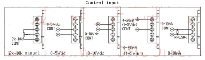 chế độ điều khiển 0-10mA: như được hiển thị, khi được sử dụng theo cách này, phải có giữa đầu mô-đun và đầu com được kết nối với điện trở 500 ohms, 1/2W. Khi cont đầu vào 0ma kết thúc trước 0vdc. Khi ngõ vào cont 10mA kết thúc từ 5VDC.