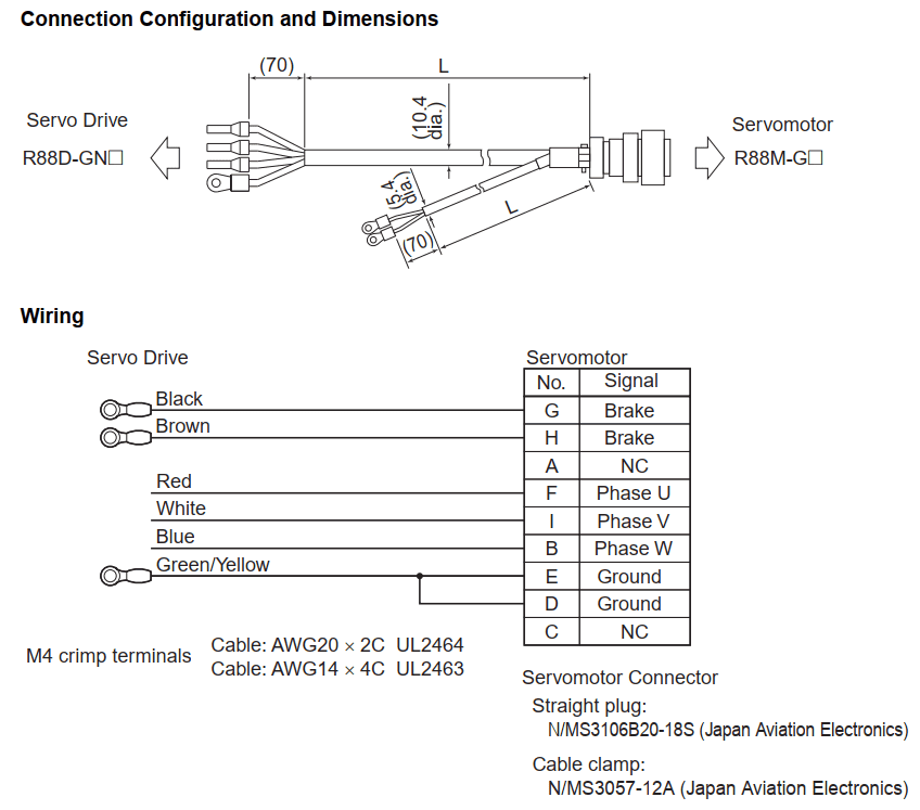 Power Cables for Servomotors with Brakes (Standard Cables)